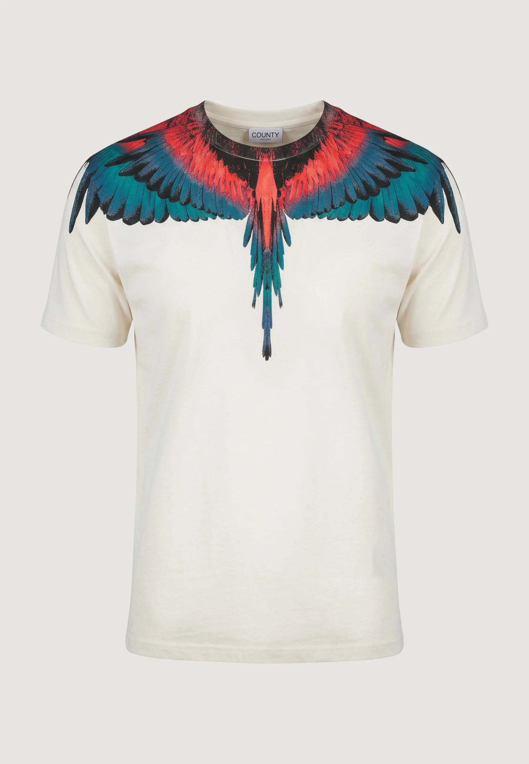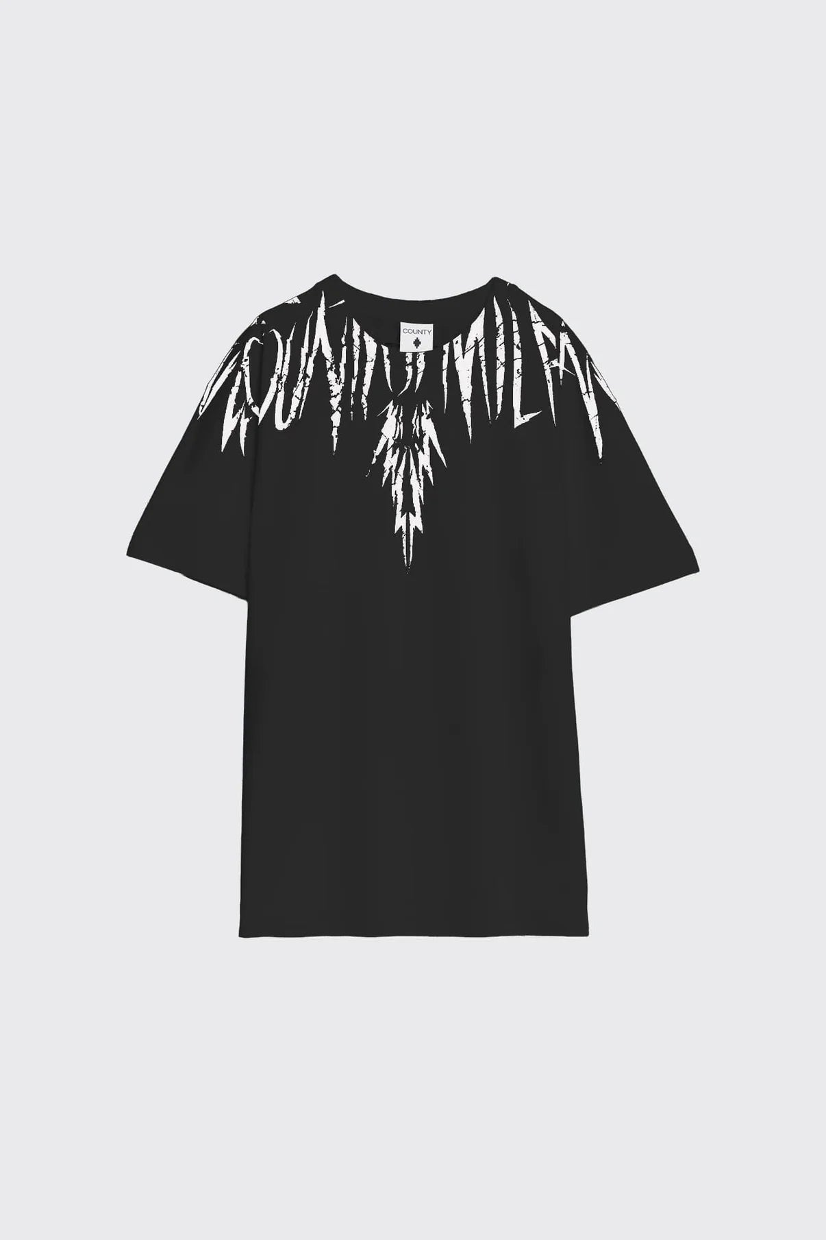 T-shirt in cotone con stampa circolare ali "Graffiti-effect" County Of Milan. Vestibilità regular.Prezzo regolare €70,00 EURPrezzo in offerta €70,00 EUR Prezzo regolarePrezzo unitario / per -