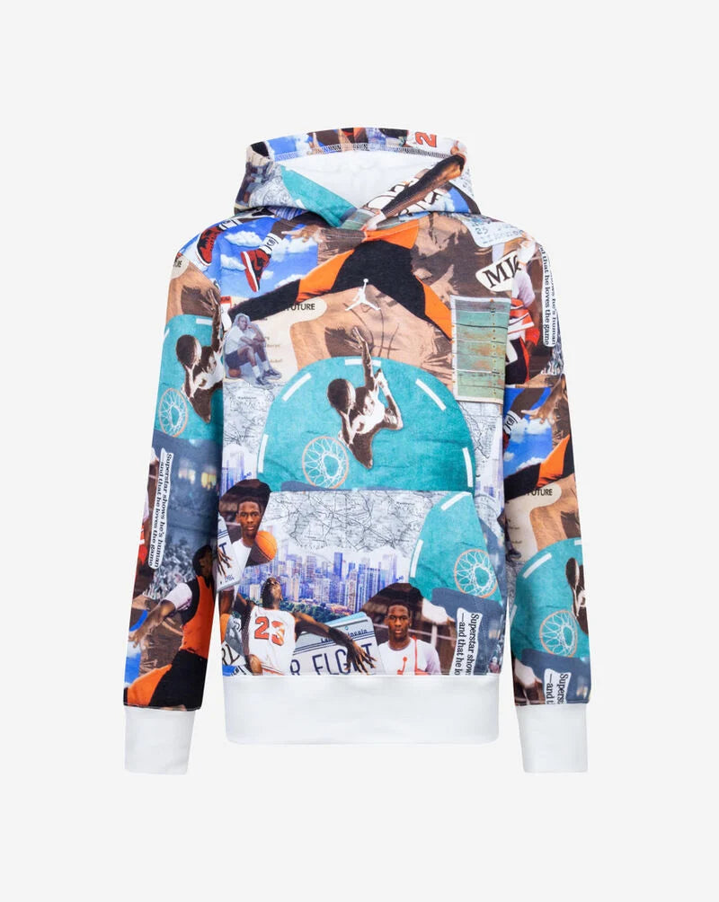 JORDAN Felpa con cappuccio MJ Brooklyn multicolore per bambino e bambina. Questa felpa con cappuccio è un capo essenziale per i fan di Michael Jordan. È realizzata in morbido cotone/poliestere French Terry e ha spalle scese che creano una vestibilità rilassata. Il taglio ampio è comodo e la tasca a marsupio può essere utilizzata per riporre piccoli oggetti o per tenere le mani al caldo. Abbinala ai pantaloni Jordan MJ Brooklyn French Terry Printed per un look coordinato. Si consiglia un lavaggio ed una stiratura a media temperatura. Stagione autunno inverno.