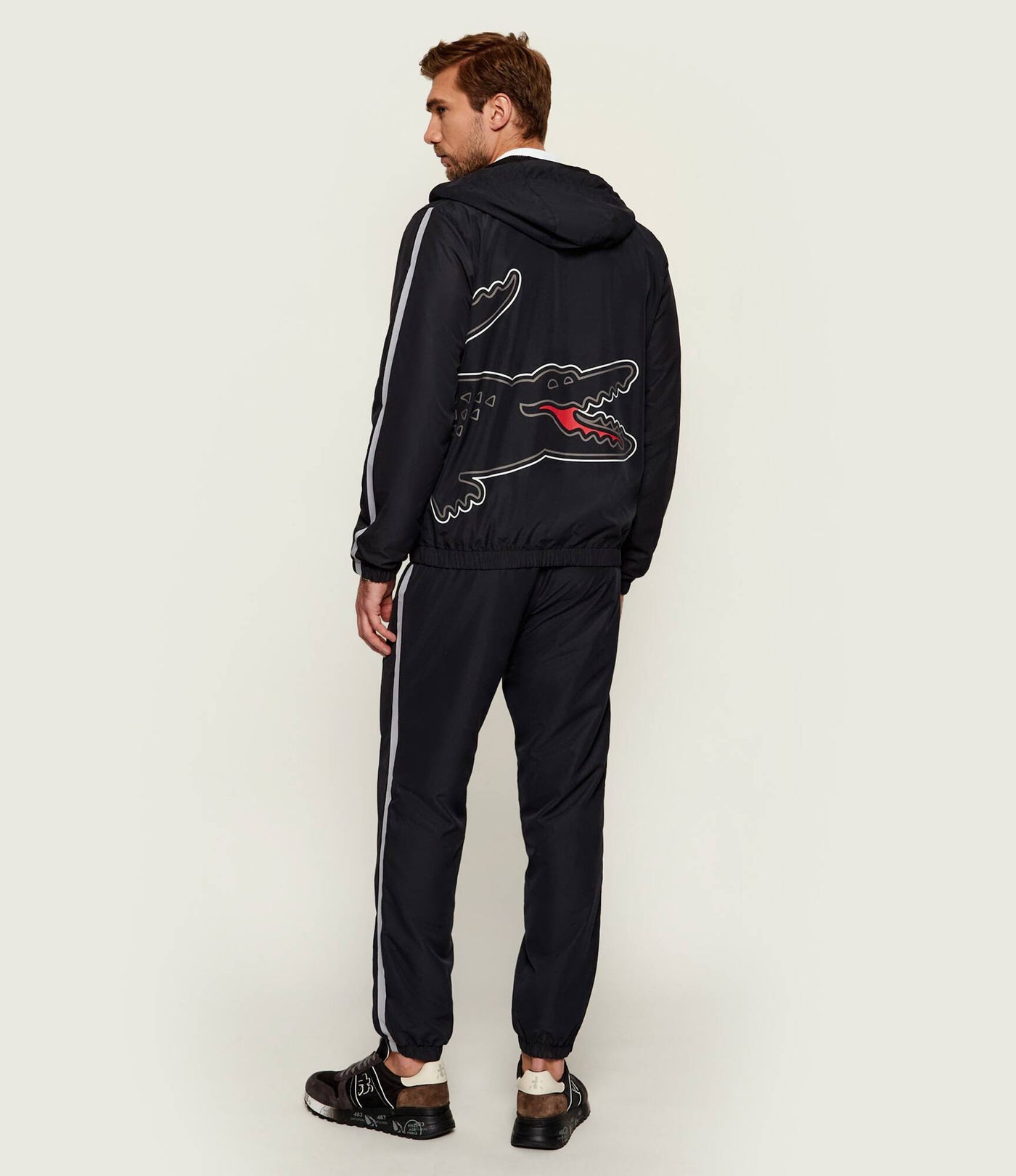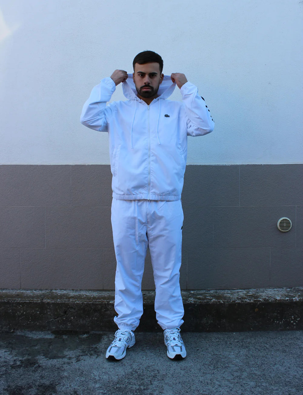 Tuta Lacoste dal design iconico e sportivo, caratterizzata da linee pulite, dettagli raffinati e logo del coccodrillo. Perfetta per un look casual e moderno.